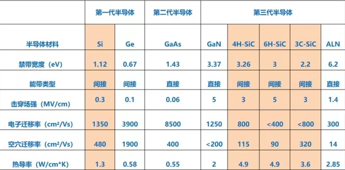 相比传统的硅材料,碳化硅的禁带宽度是硅的3倍;导热率为硅的4-5倍;击穿电压为硅的8倍;电子饱和漂移速率为硅的2倍。种种特性意味着碳化硅特别适于制造耐高温、耐高压,耐大电流的高频大功率的器件。